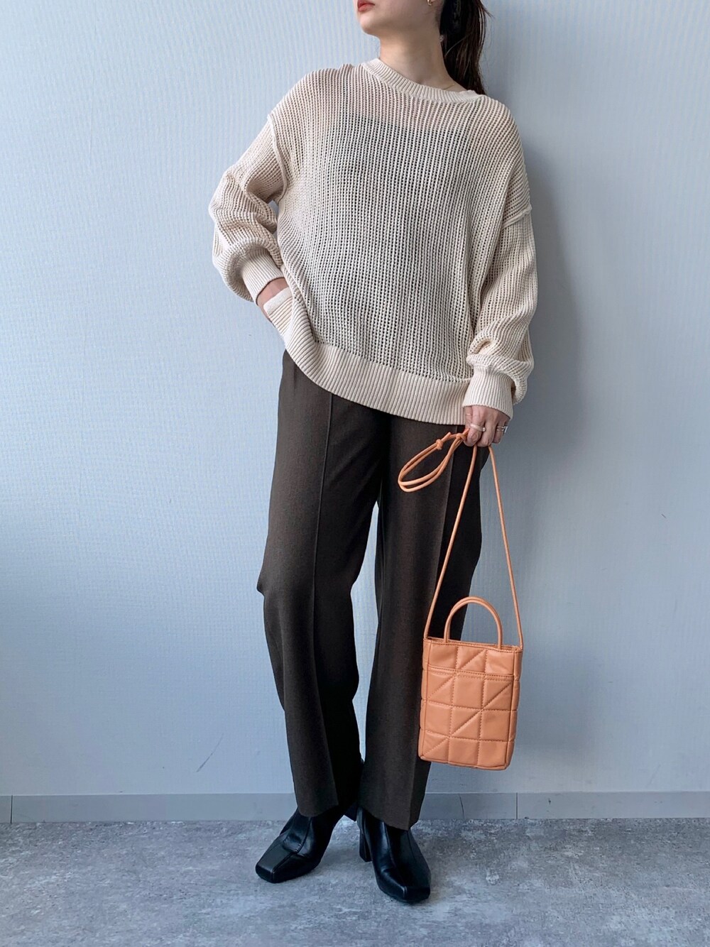 ゆったりとしたメッシュニット! ブラウンパンツでメンズライクに仕上げました! 差し色にオレンジのミニバッグを合わせて 地味になり過ぎないよう調節。 大人っぽくヒール合わせが◎! Instagram→@eritis ※ 撮影場所の明るさなどにより、色味が若干異なっている事がございます。 カラーは公式サイトでお確かめください!
