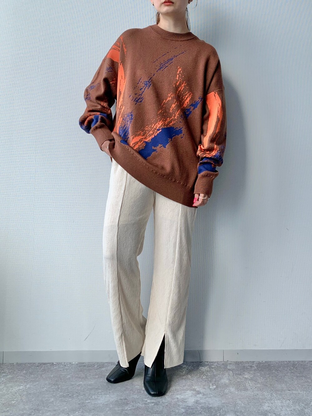 メンズで予約大人気のペイントニット。 レディースでもゆったり着ていただけるアイテム! Instagram→@eritis ※ 撮影場所の明るさなどにより、色味が若干異なっている事がございます。 カラーは公式サイトでお確かめください!