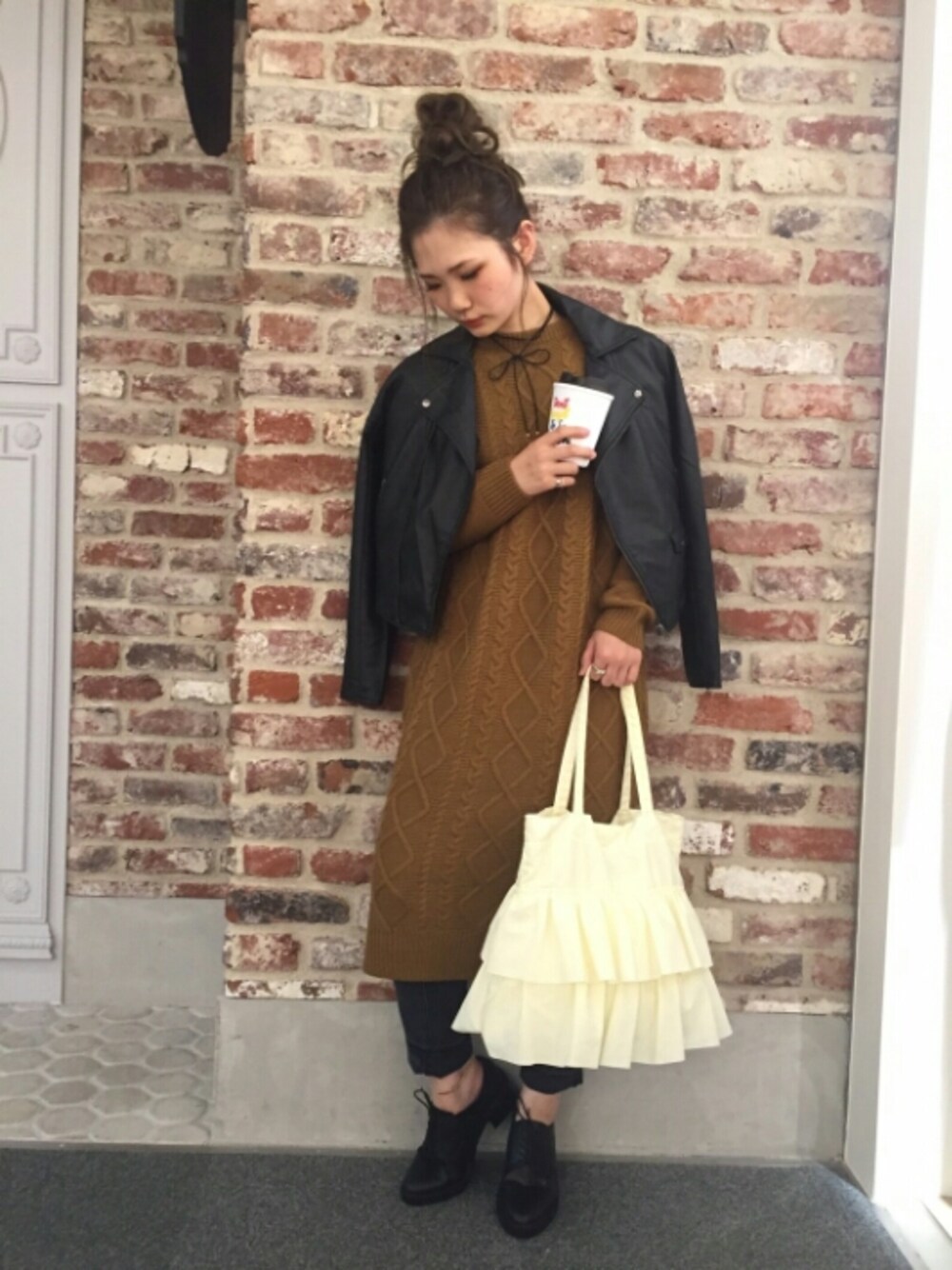 ***らいだーす×にっとわんぴ。*** ニットワンピースは秋らしいカラーの マスタードです。 グリーンもあって迷ってます。。。 長さも長めで、肌弱い私でもチクチクもなく着れる優れもの。 ライダースは今4,900円にお値下げ中。 今買うしかないですね。 人気のフリルトートは中にポケットもありマチも広めなので、たっぷり入ります。 マグは一部の店舗のみのお取り扱いです。 フォロー、いいね、save。 いつもありがとうございますです。 これからもよろしくどうぞです。