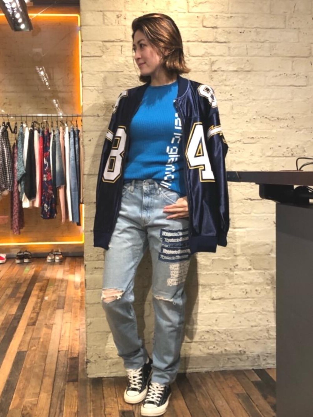 giriko(HYSTERIC GLAMOURルクア大阪店)のデニムパンツ「DH加工デニム テーパードPT」を使ったコーディネート