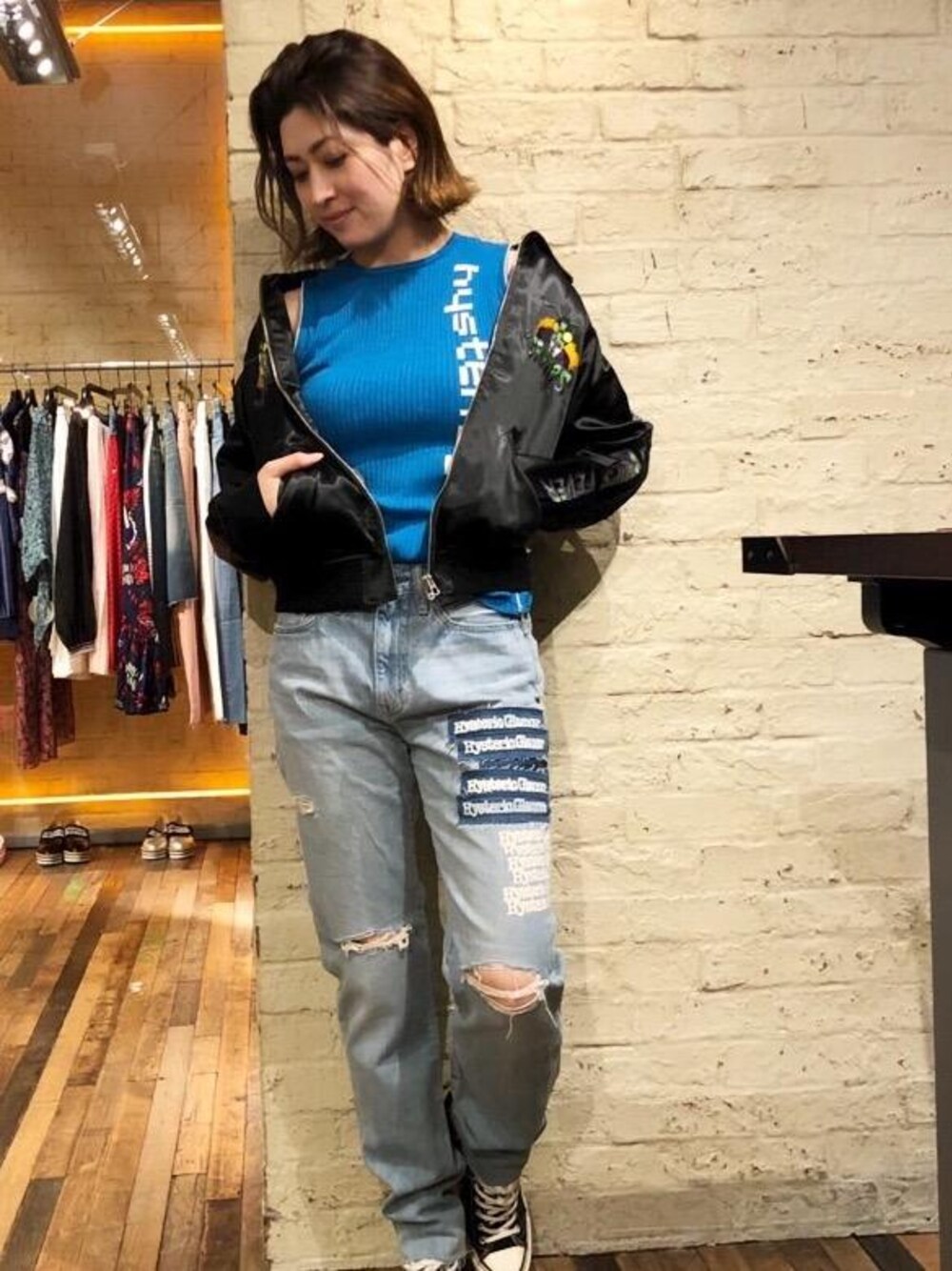 giriko(HYSTERIC GLAMOURルクア大阪店)のデニムパンツ「DH加工デニム テーパードPT」を使ったコーディネート
