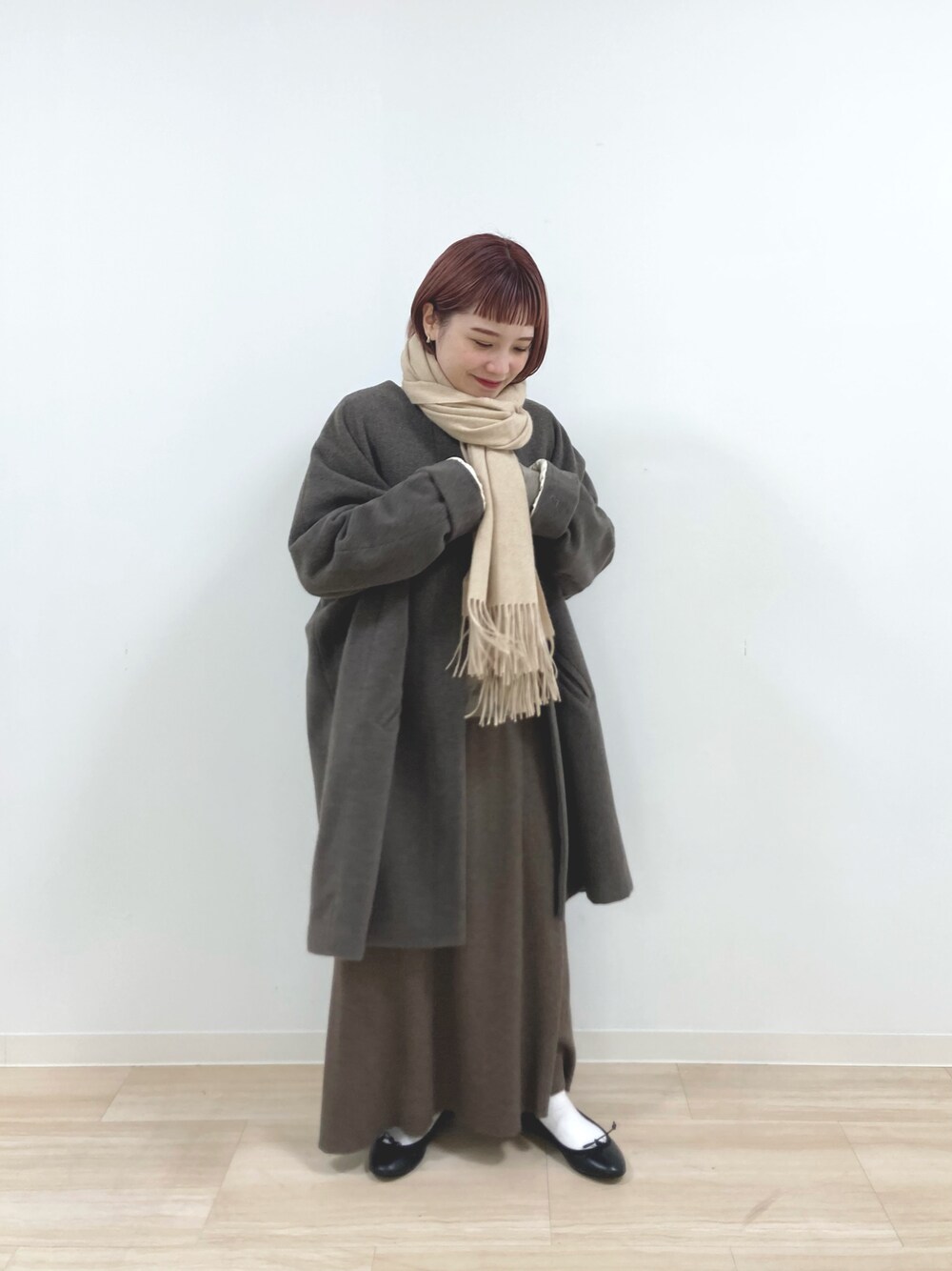 erika(pualcecin)のノーカラーコート「【premium】ニュージーランドウールモッサノーカラーコート」を使ったコーディネート