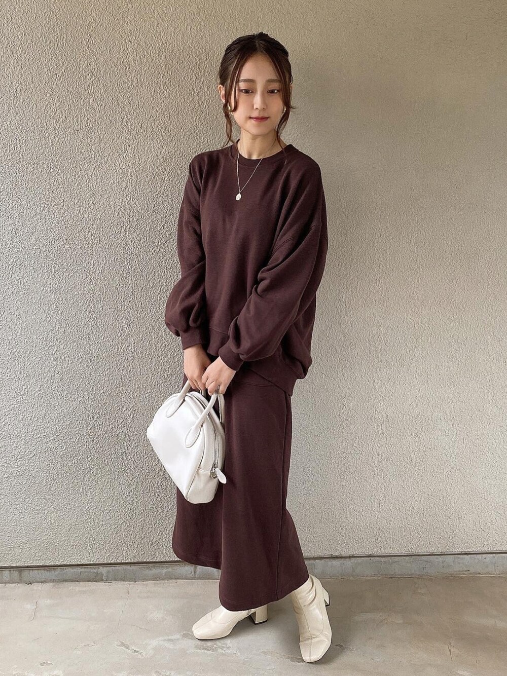 スエットのセットアップでも きれいめな小物で大人可愛くなる🤍