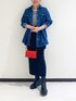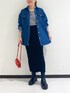 モノトーンスタイルに デニムシャツが映える 🖤💙🖤💙 差し色で 赤のミニバッグがポイント💄 少しオーバーのデニムシャツは 着回しバツグンです◎