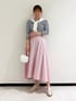 🍬🍬🍬 ネイビーとピンクの組み合わせで フレンチカジュアルに◎ たっぷりとしたフレアスカートは 上品な印象になります