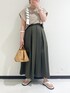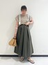 🍃🍃🍃 アースカラーのトーンを合わせて カジュアル過ぎない 上品見えコーデ◎ ブラウス見えする艶のあるカットソーが 特にオススメです!