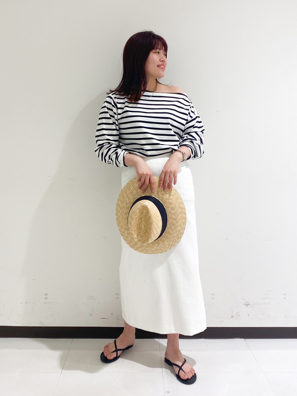 たじ(カリテ スケープ アトレ吉祥寺店)のTシャツ/カットソー「ロングボーダーTカットソー」を使ったコーディネート