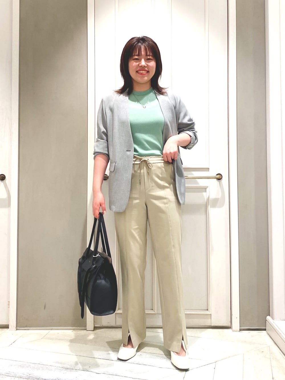 🐠🐠🐠 爽やかなグリーンのインナーも 薄手で気持ちいい素材◎ ベージュとグレーの差しカラーで💚