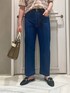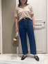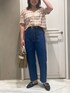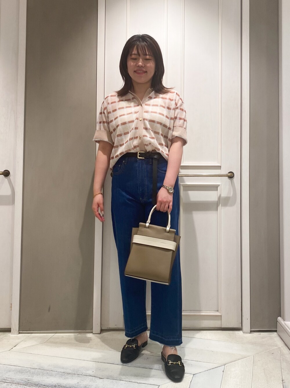 🎞️🎞️🎞️ 大人デニムコーデ シアーでチェック柄のニットは 少し抜け感が出て オシャレです◎ 今年はベルトでウエストマークが🩵