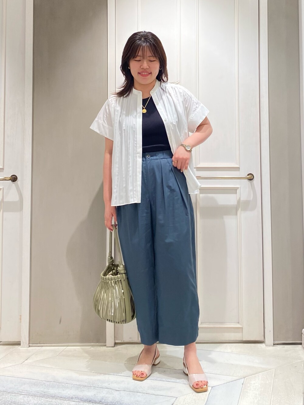 🪽🪽🪽 プリーツのデザインが新鮮な ブラウスと涼しげワイドパンツコーデ 袖ありでもおしゃれなブラウスです!