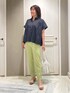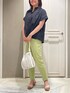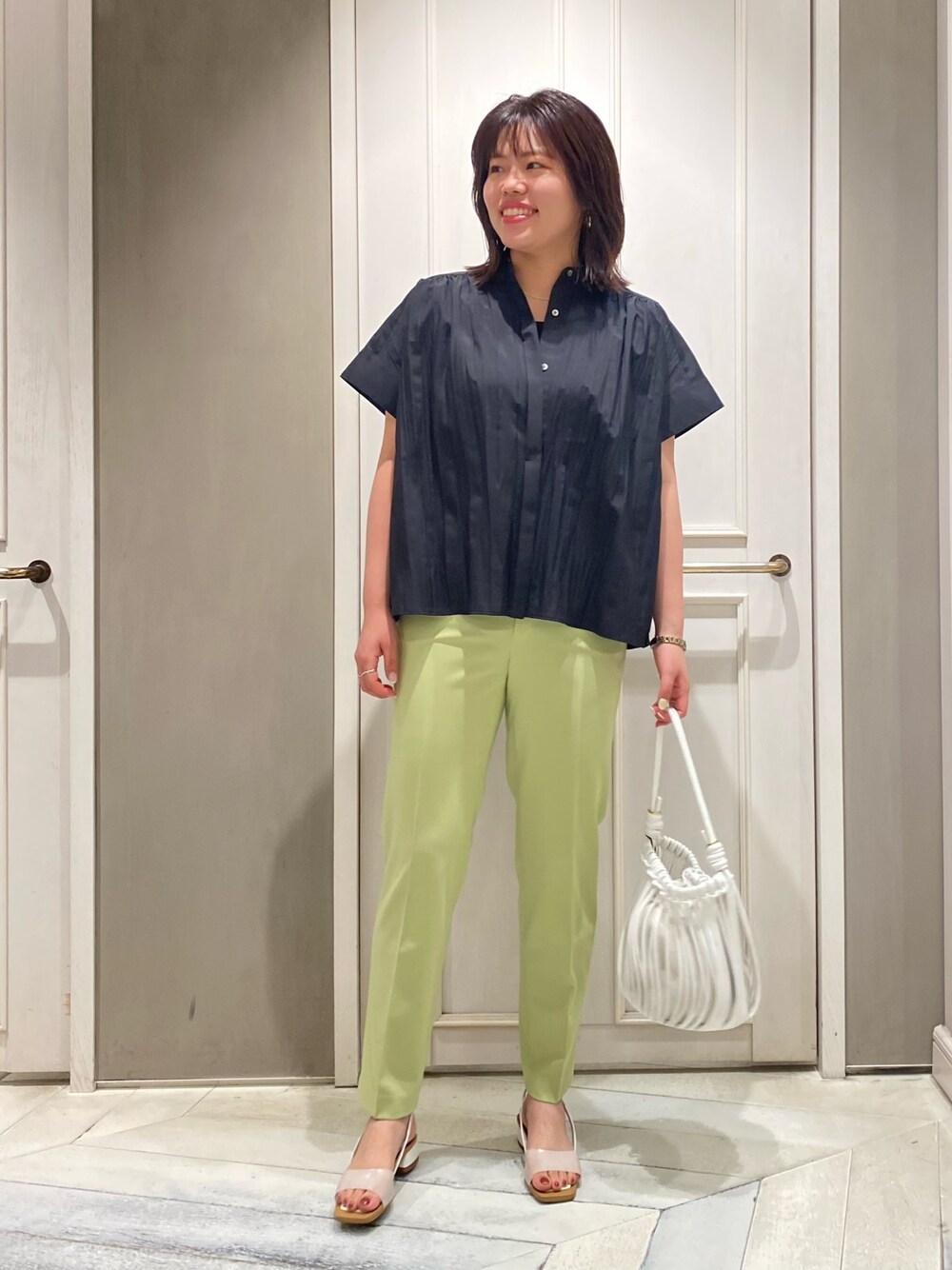 🐠🐠🐠 プリーツのデザインが おしゃれなブラウス◎ トレンドのライムカラーと合わせて 大人カラーパンツコーデです!