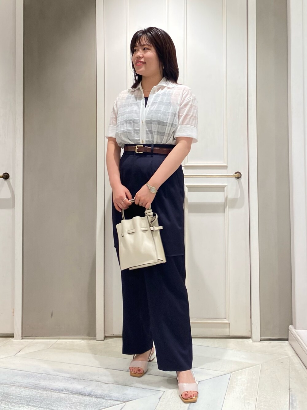 ⏱️⏱️⏱️ シアーなチェックニットは シンプルにネイビーパンツと 合わせるだけで清楚オシャレ◎ かしこまりすぎない印象で オススメです!