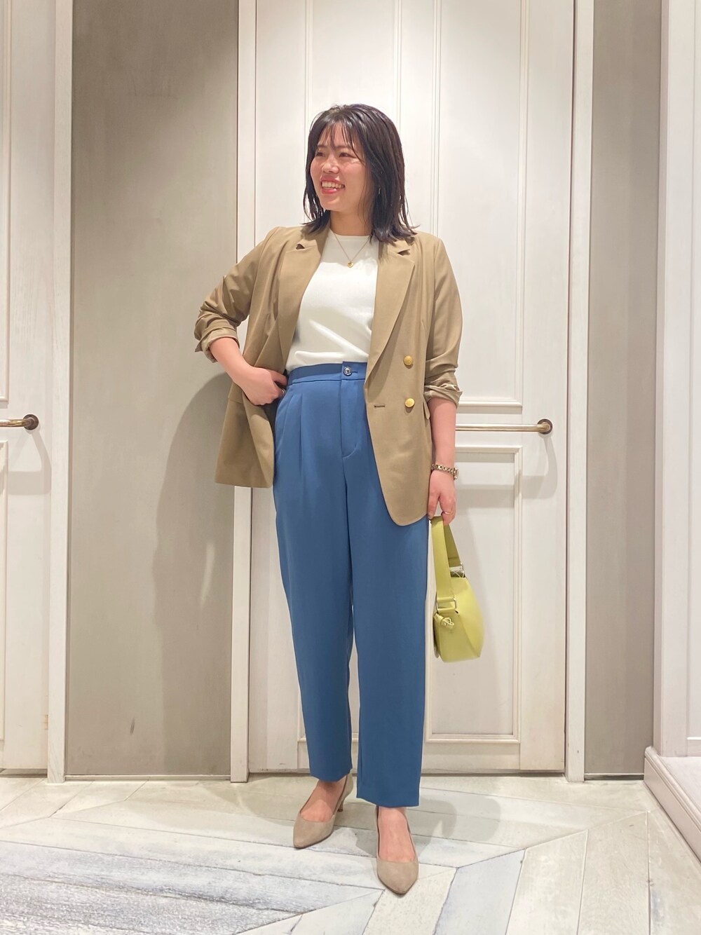☔️☔️☔️ 季節の変わり目には ジャケットで気温調節◎ ブルーのパンツもお仕事モードに