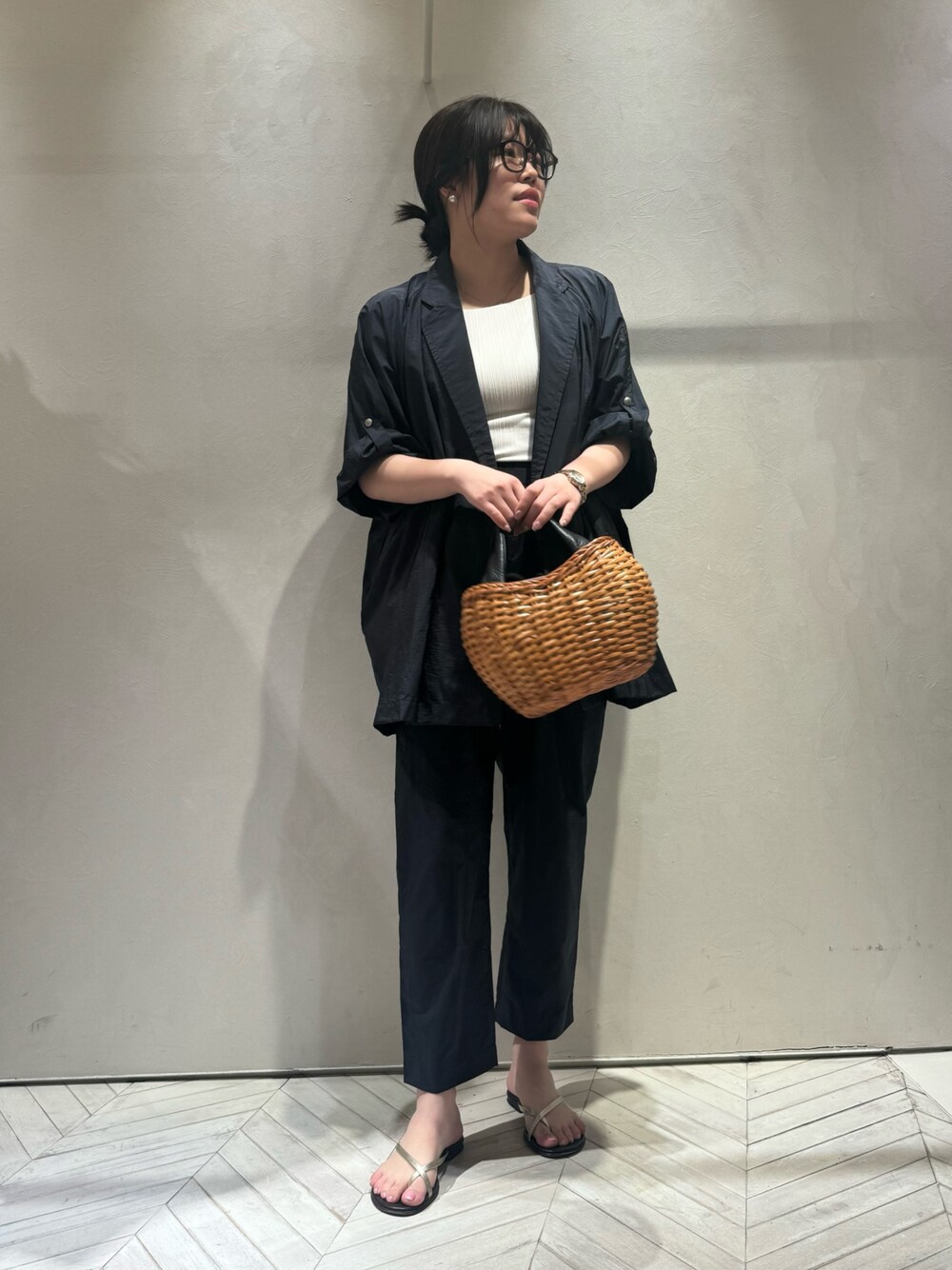 🍍基本サイズ 38 骨格ストレート/160cm ジャケット▶︎着用サイズ 38 重すぎないブラックカラーの 撥水ジャケットのセットアップです😋🌿 インナーはタンクトップで良し👌 ジャケットはかなりエアリーなので 着たまま過ごしても🙆♀️ パンツ▶︎着用サイズ 38 ゴムで履きやすさはもちろん☝️ 太もも周りのゆとりと 美脚に見えるテーパードのバランスが◎ 詳細は下記のアイテムページで ご覧いただけます◎