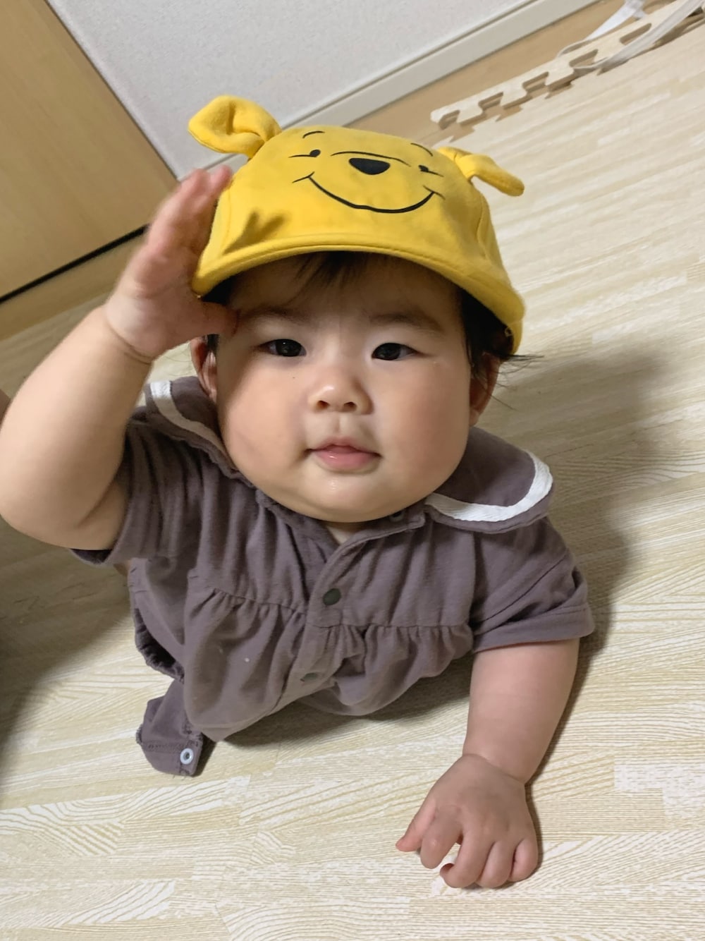 ママのおともだちからもらった プーさんのお帽子🧢おきにいり♡ お洋服はバースデイのテータテートだよ。 襟がセーラー服みたいでかわいいでしょ?