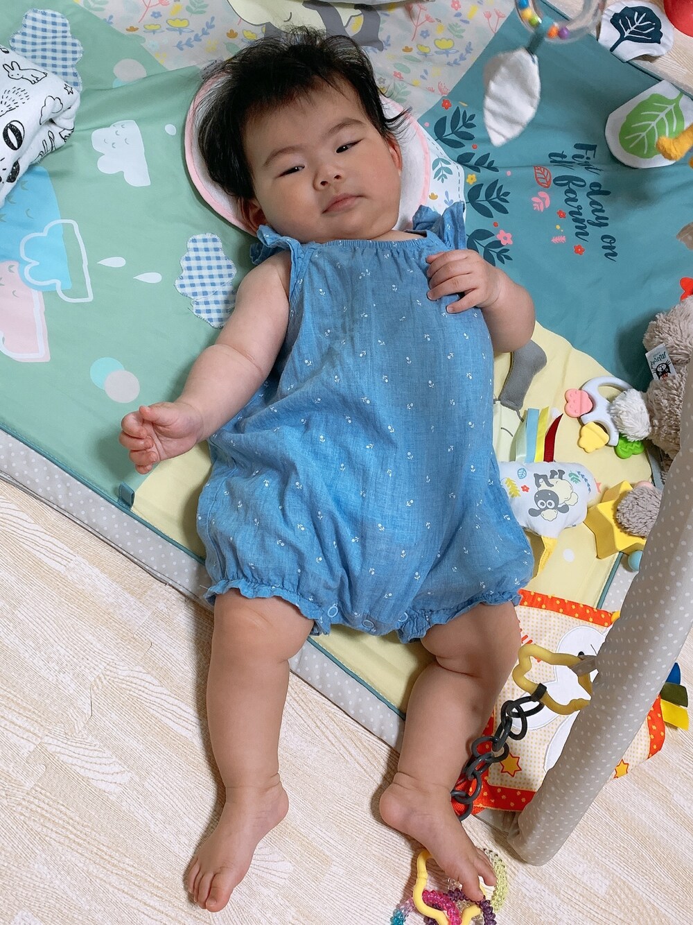 寝起きの1枚📸 セールで50%OFFでgetした H&Mのお洋服🍐 肩紐がフリルになっててかわいいんだよ〜🎀 そして涼しそうでしょー??🥰