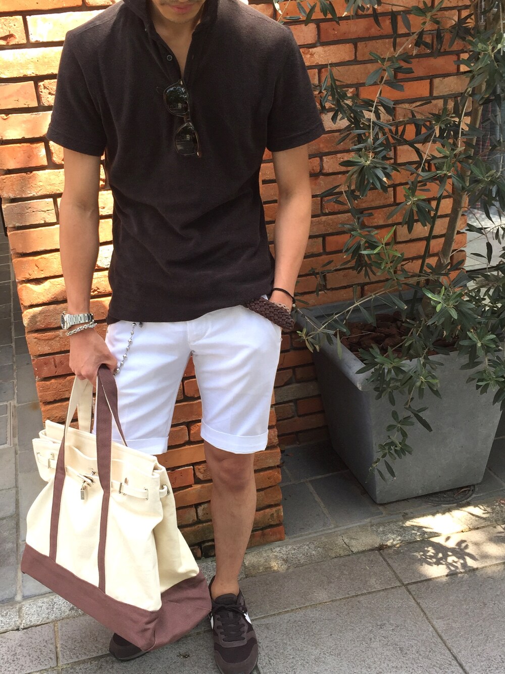 ショーツスタイル Ver.2 BROWN×WHITE BROWNのキャンバスバッグ😎👜 なかなか珍しいタイプ✨ 最近パイル地にハマる👌🏼