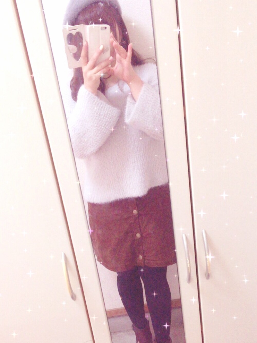 久しぶりの投稿です😊 最近、ベレー帽にはまっております🌺 今日はベレー帽の色とトップスの色をあわせたコーデでバイトに行きます😊