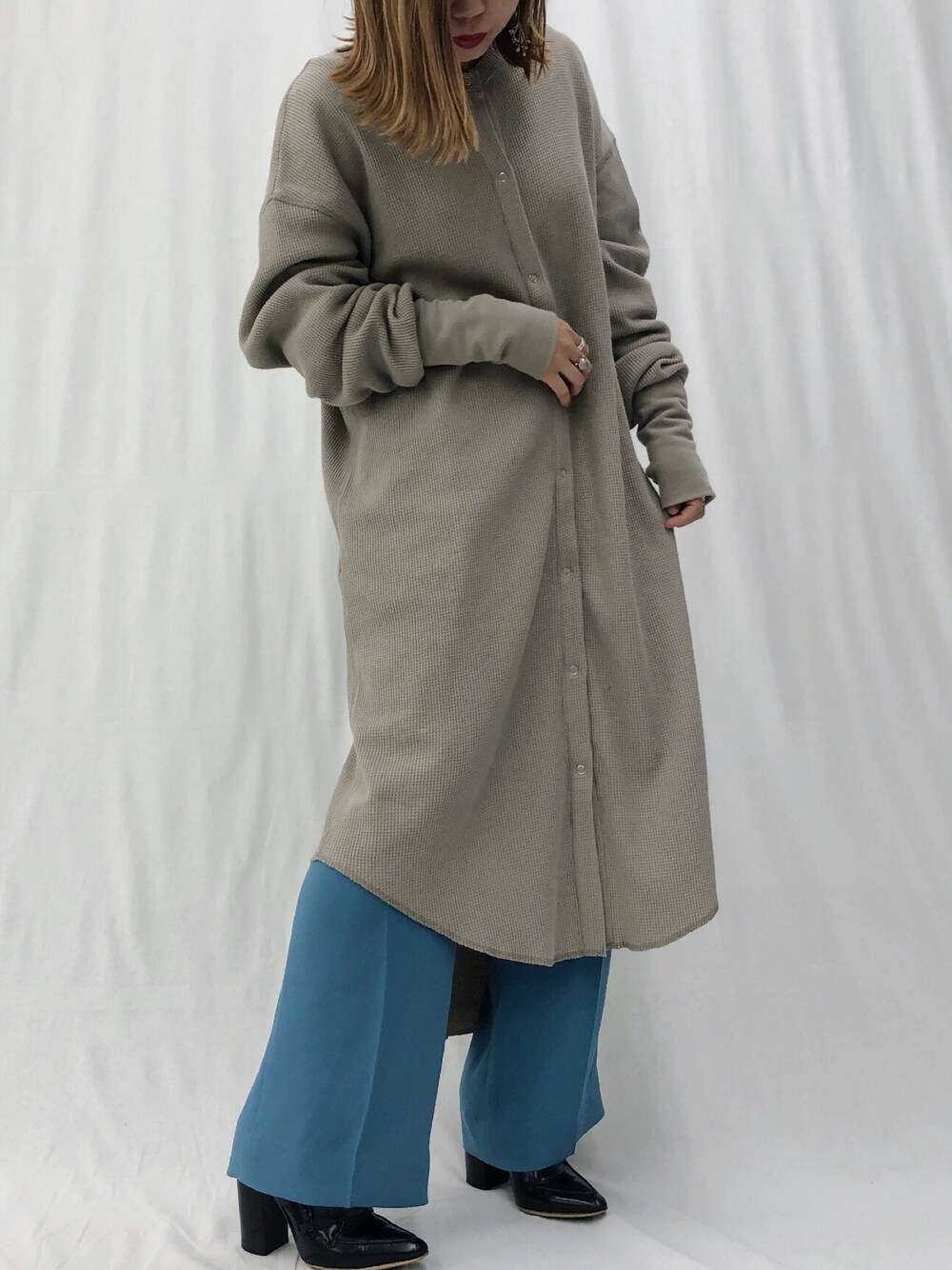 ワッフルカーデを きれいめに。
