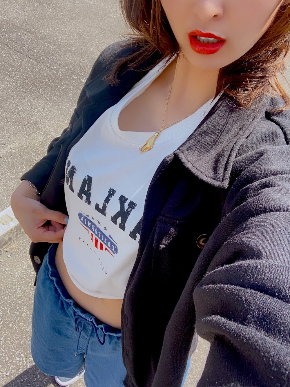 ショート丈Tシャツ×デニム とても動きやすい格好で最適!