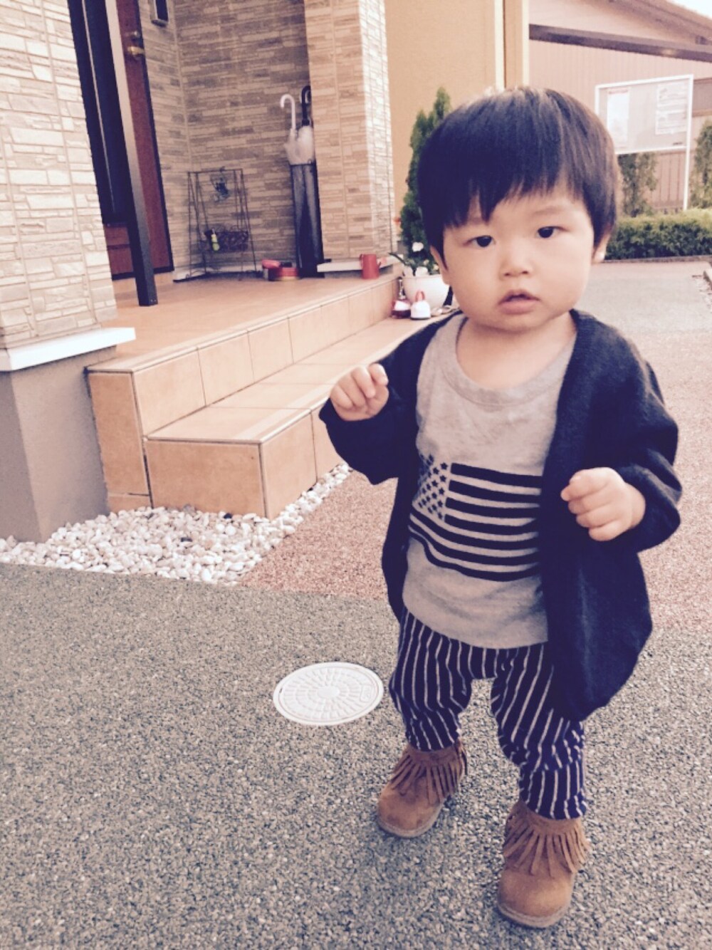 今日のコーデ♡ 今日はとっても暑かったから中は半袖シャツ!! 寒くなったらカーディガンを🔛♡ このカーディガン、使えるーლ(╹ε╹ლ)