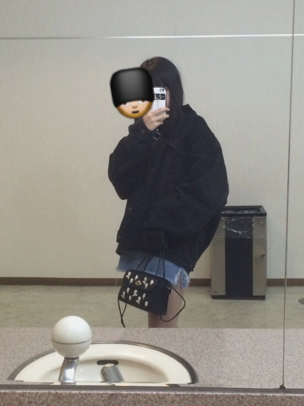 リーバイスのブラックデニムのGジャンもデニムスカートも古着😀💕 トップスはUNIQLOのボーダーのタートルネック。 バッグは最近ゲットしたCOACHのもの😻お気に入り👏
