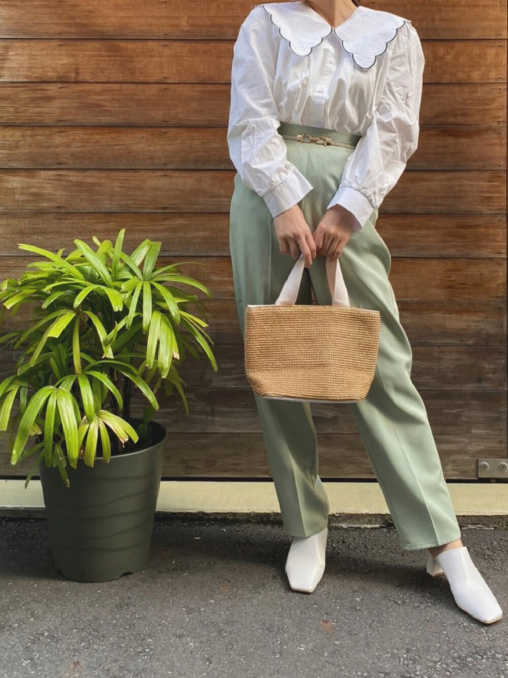 er_o0のシャツ/ブラウス「無地・ギンガムチェックスカラップ刺繍ビッグカラーブラウス<デザインブラウス>【ZOZO限定アイテム】」を使ったコーディネート