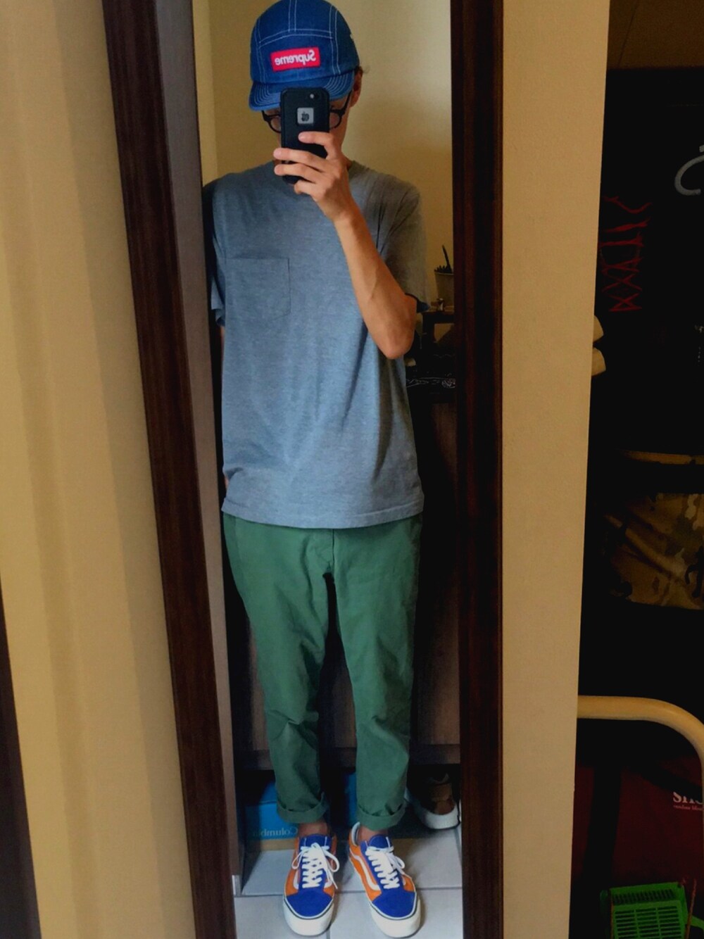 らくらく通勤スタイルw アナハイムのオルスクに18ssのキャップ、チャンピオンのポケT、無印のアンクルチノパンツ