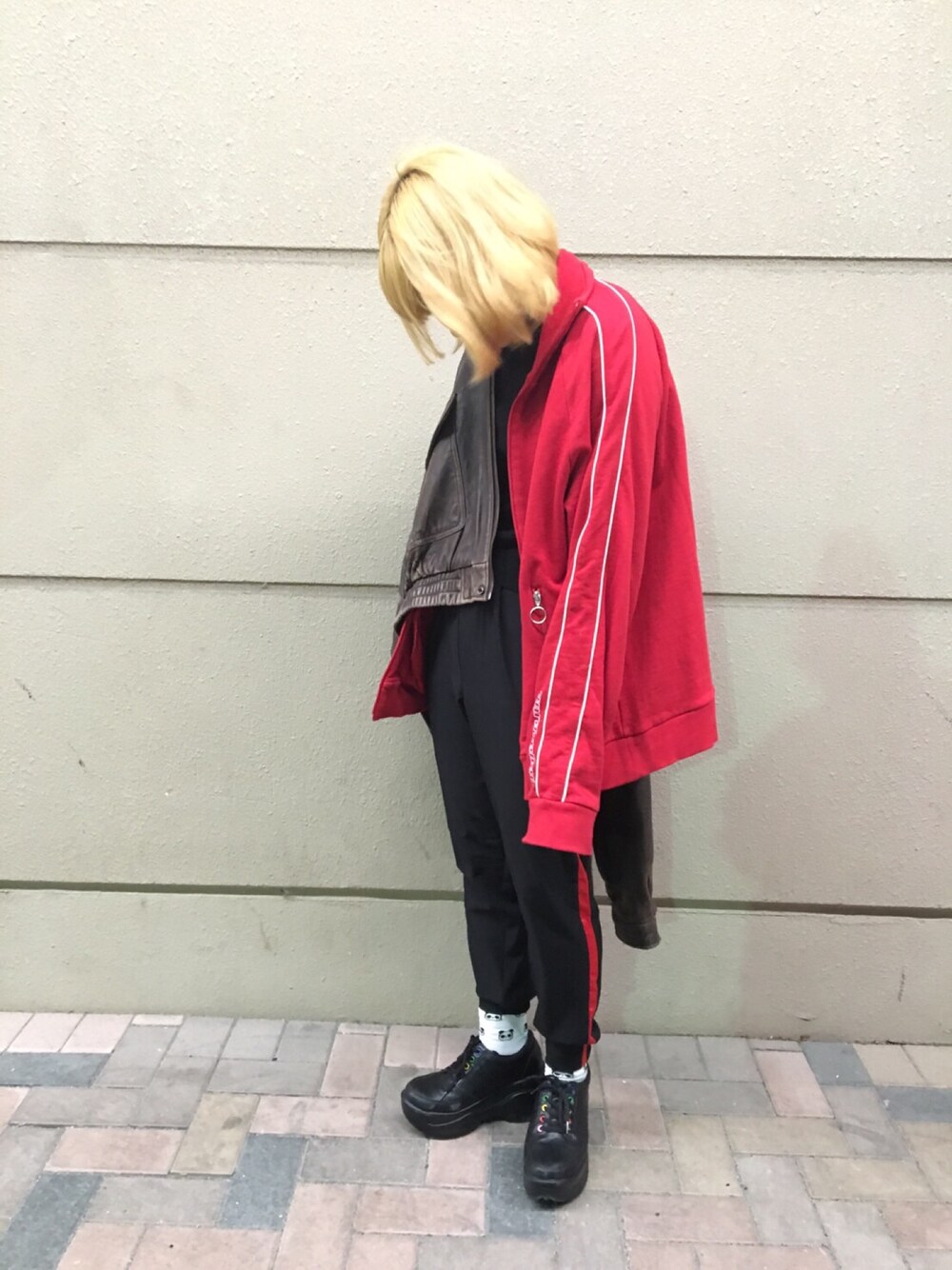 昨日の出勤コーデ! ヤンキーコーデです! 赤と黒で統一してみました! いつもいいねありがとうございます🙇