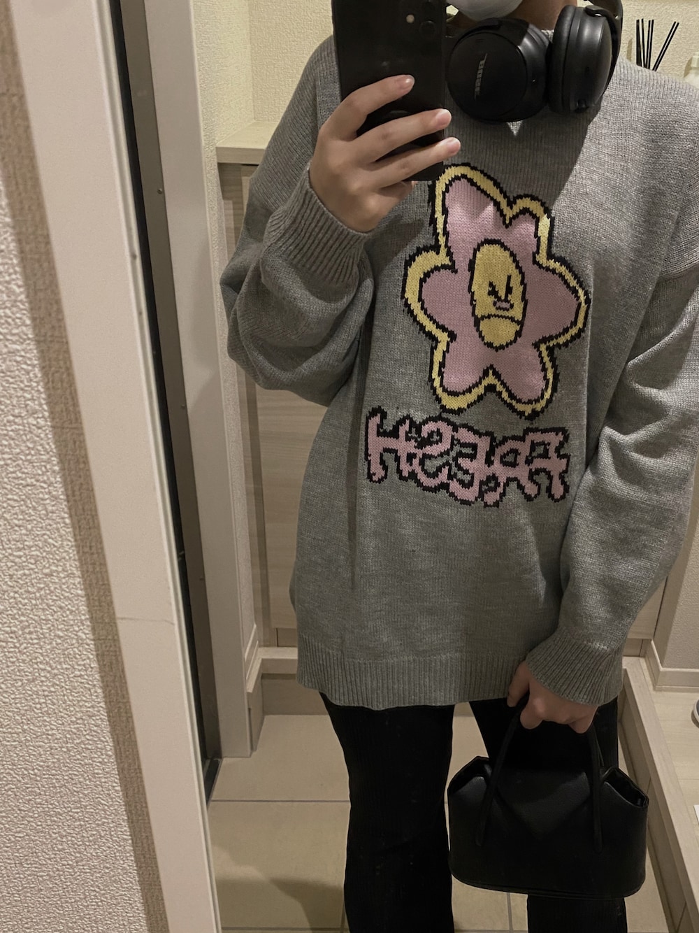 砂肝のニット/セーター「WEB限定 MARIA SAKURAI×FREAK'S STORE 別注 ビッグシルエット ジャガードニット/FRESH」を使ったコーディネート