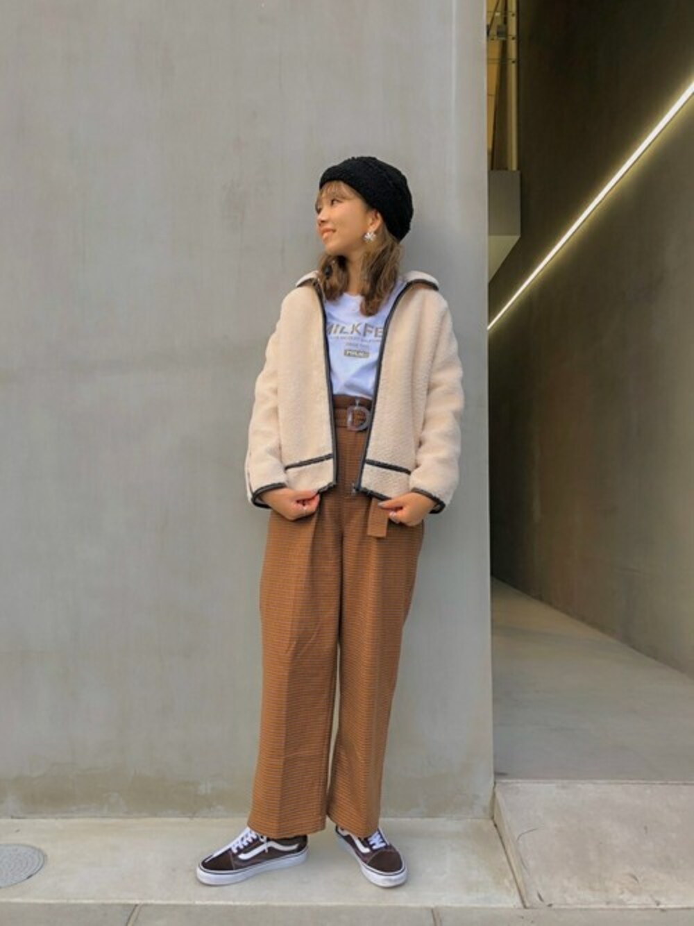 MILKFED. HEAD OFFICEのブルゾン「FAUX LEATHER TRIM BOA BLOUSON」を使ったコーディネート