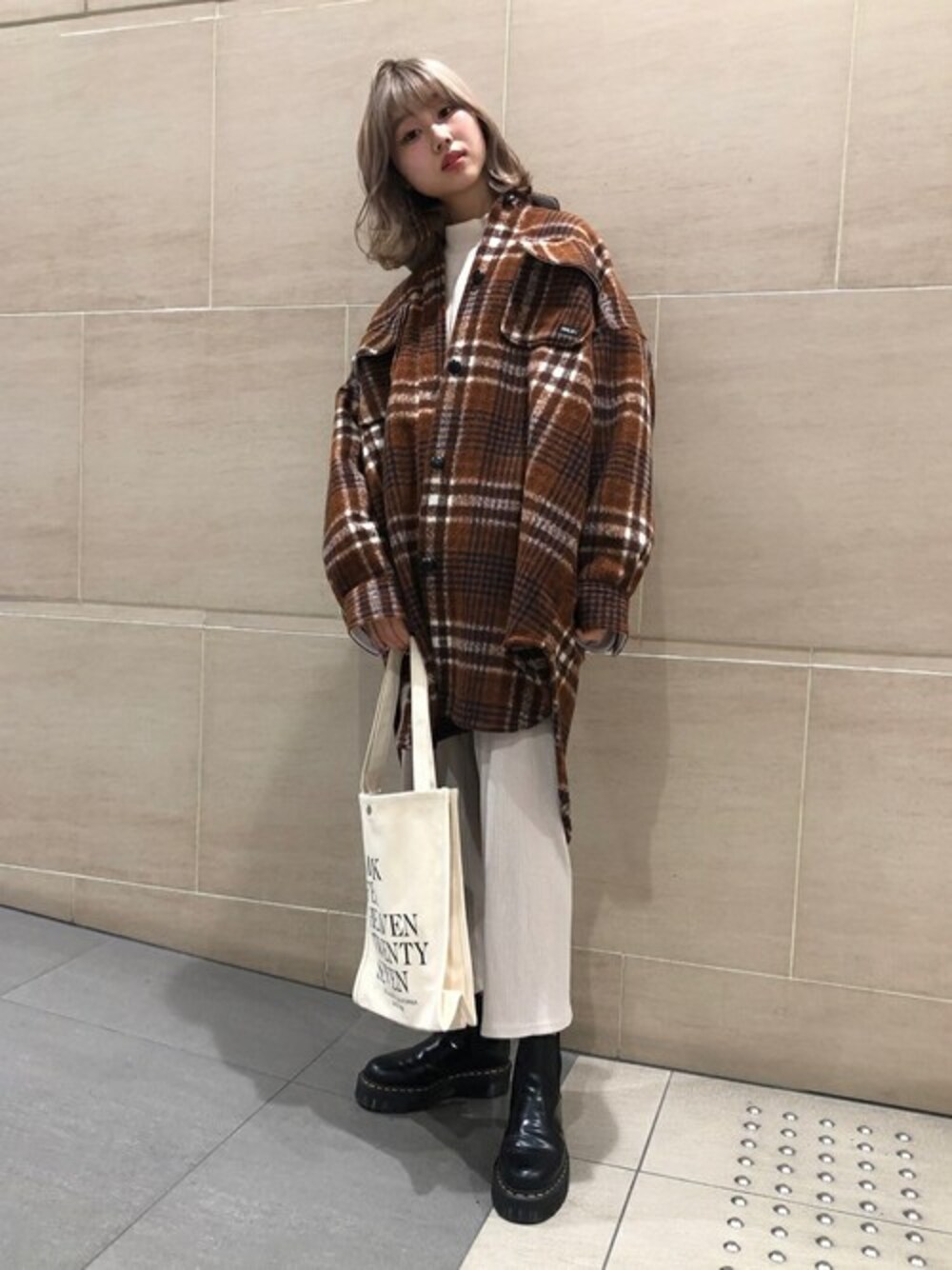 MILKFED. HEAD OFFICEのその他アウター「BIG SILHOUETTE PLAID JACKET」を使ったコーディネート