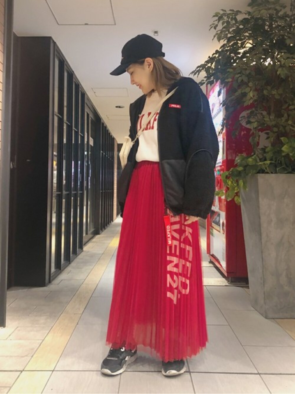 きれいめなスカートも組み合わせ次第でカジュアルにカッコよく着こなせます!アウターはボアとナイロンどちらでも着れるリバーシブルです!! MODEL:153cm