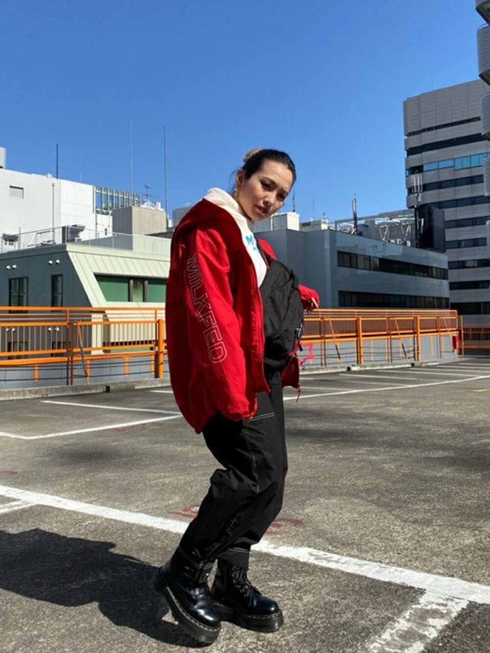 MILKFED. HEAD OFFICEのナイロンジャケット「OUTLINE LOGO HOODED ZIP JACKET」を使ったコーディネート
