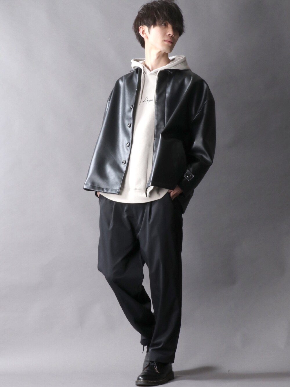 SITRY(SITRY)のブルゾン「fly front wide fake leather jacket/フライフロント ワイド フェイクレザー ジャケット」を使ったコーディネート