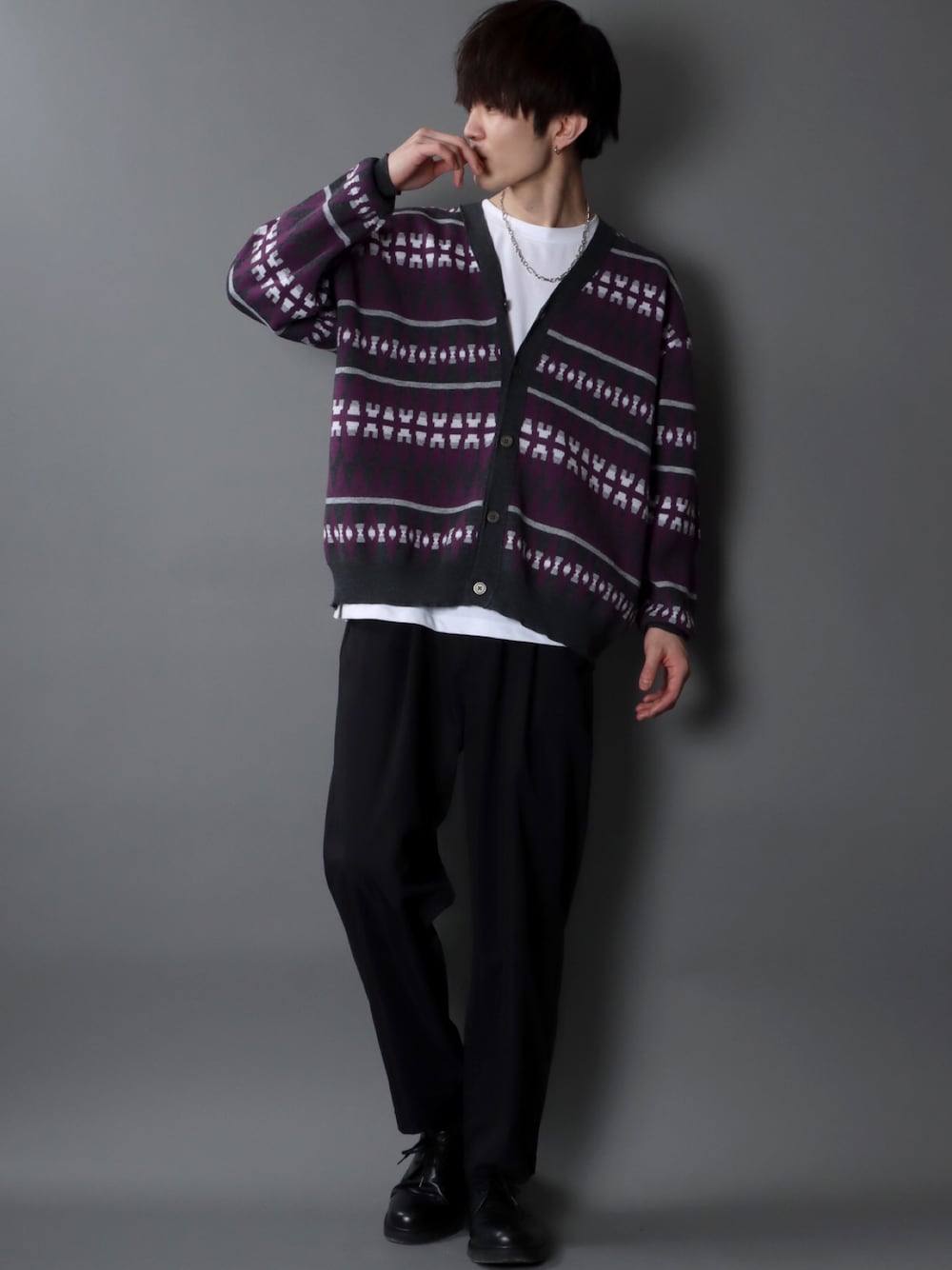 SITRY(SITRY)のカーディガン/ボレロ「Big silhouette Patterned Knit Cardigan/ビッグシルエット 総柄 ニット カーディガン/カーデ」を使ったコーディネート