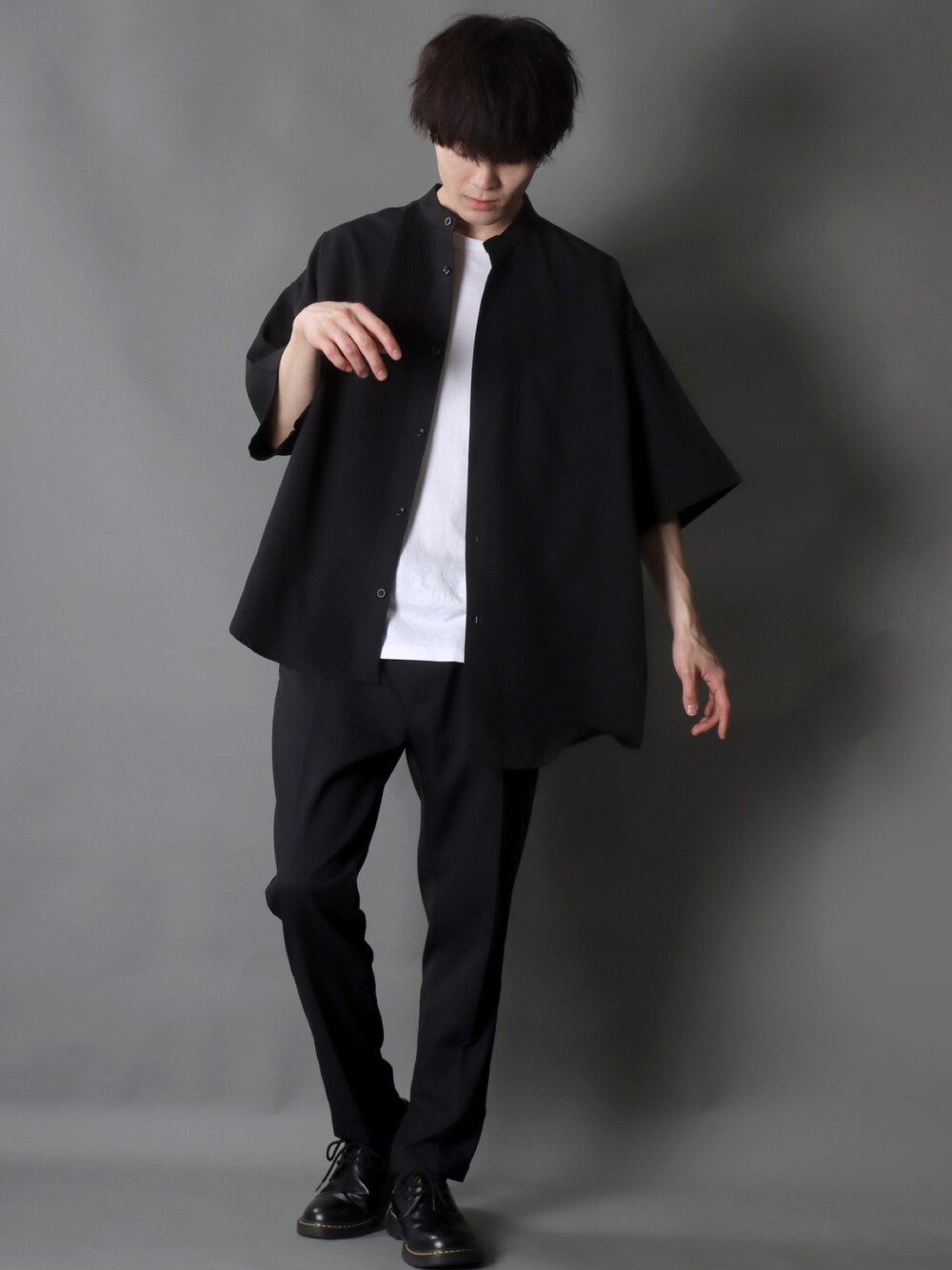 SITRY(SITRY)のシャツ/ブラウス「wide silhouette asymmetry pin tuck Band Collar shirt/ワイドシルエット アシンメトリー ピンタック バンドカラー シャツ」を使ったコーディネート