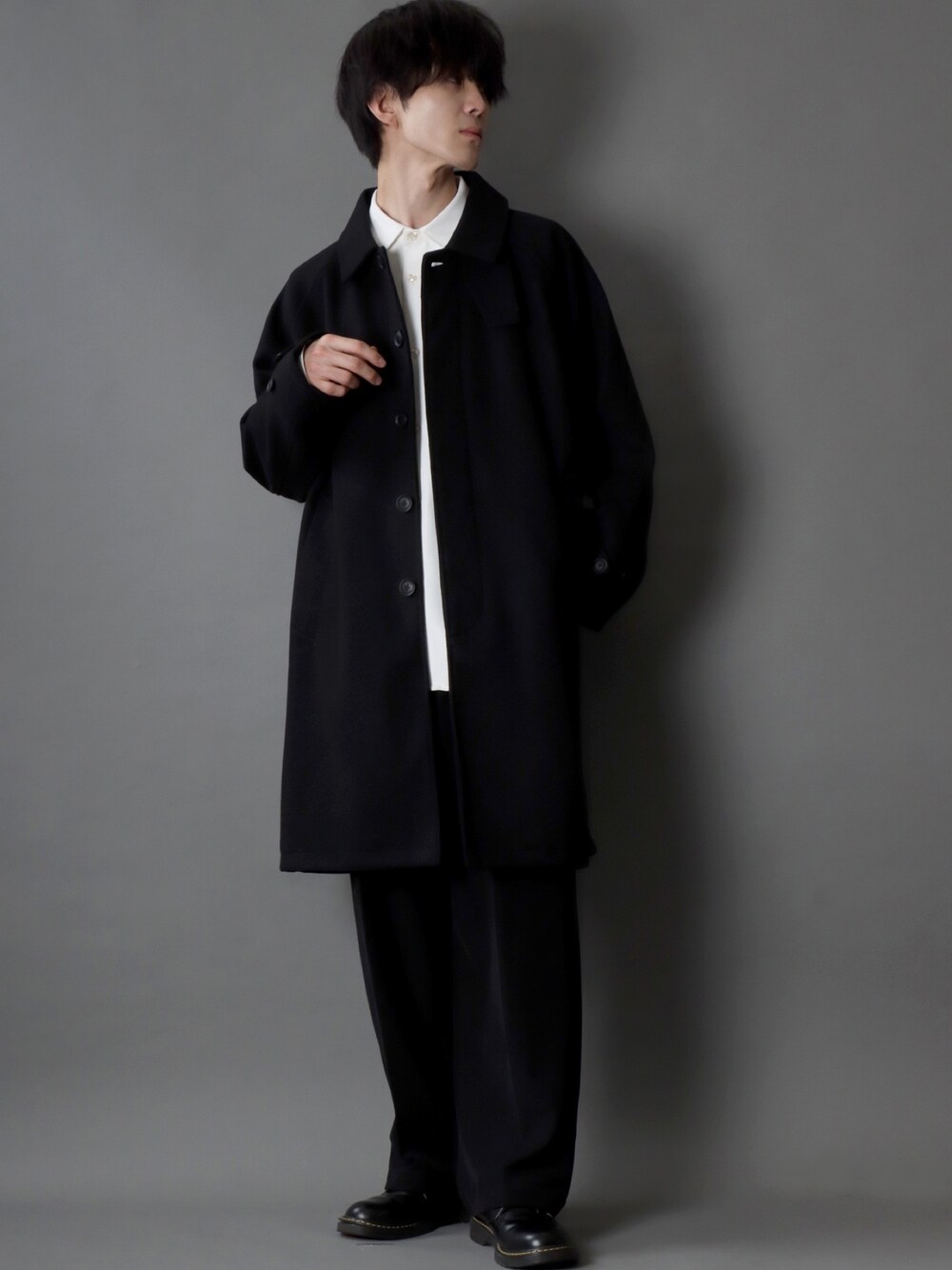 SITRY(SITRY)のステンカラーコート「wool like over size bal collar coat/オーバーサイズ バルカラーコート/ステンカラーコート」を使ったコーディネート