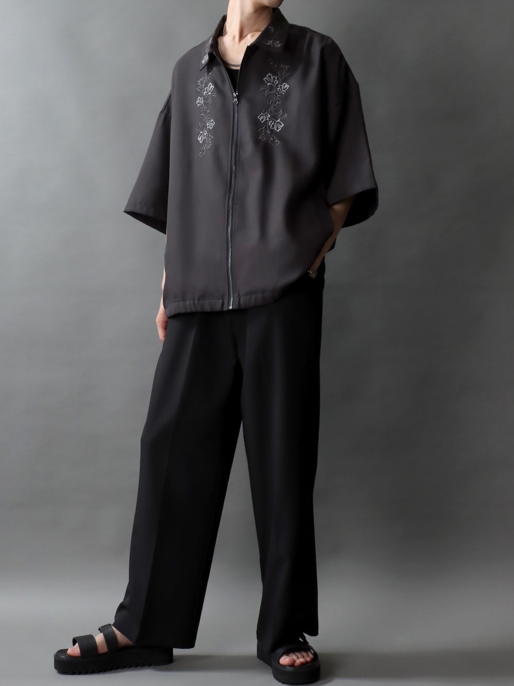 SITRY(SITRY)のブルゾン「SITRY Flower Embroidery short sleeve blouson/別注 オーバーサイズ 花刺繍 シャツ ジャケット ブルゾン」を使ったコーディネート