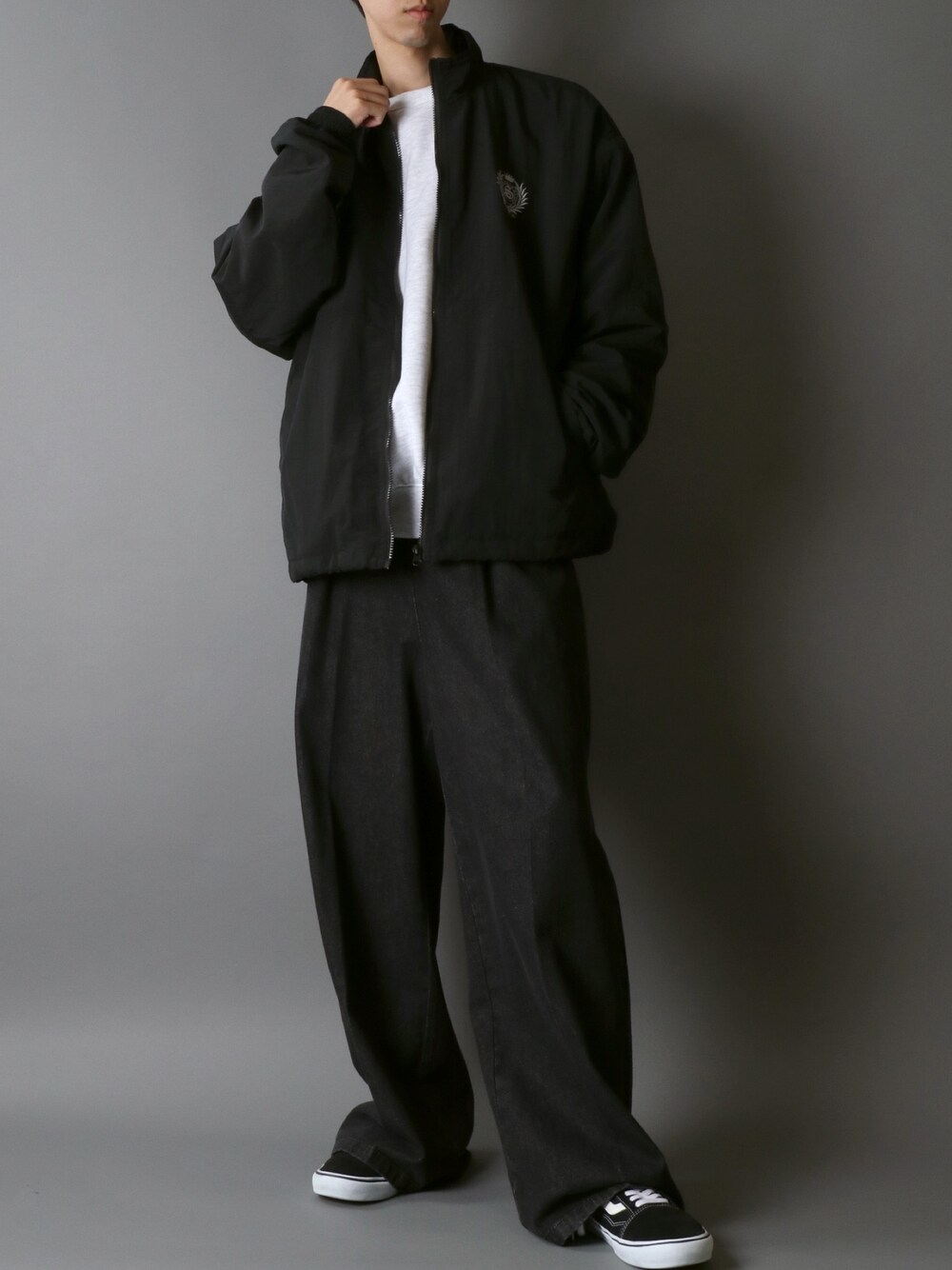 SITRY(SITRY)のナイロンジャケット「SITRY Nylon Track Jacket/別注 オーバーサイズ ブロークコア ナイロンジャケット トラックジャケット ブルゾン セットアップ対応」を使ったコーディネート