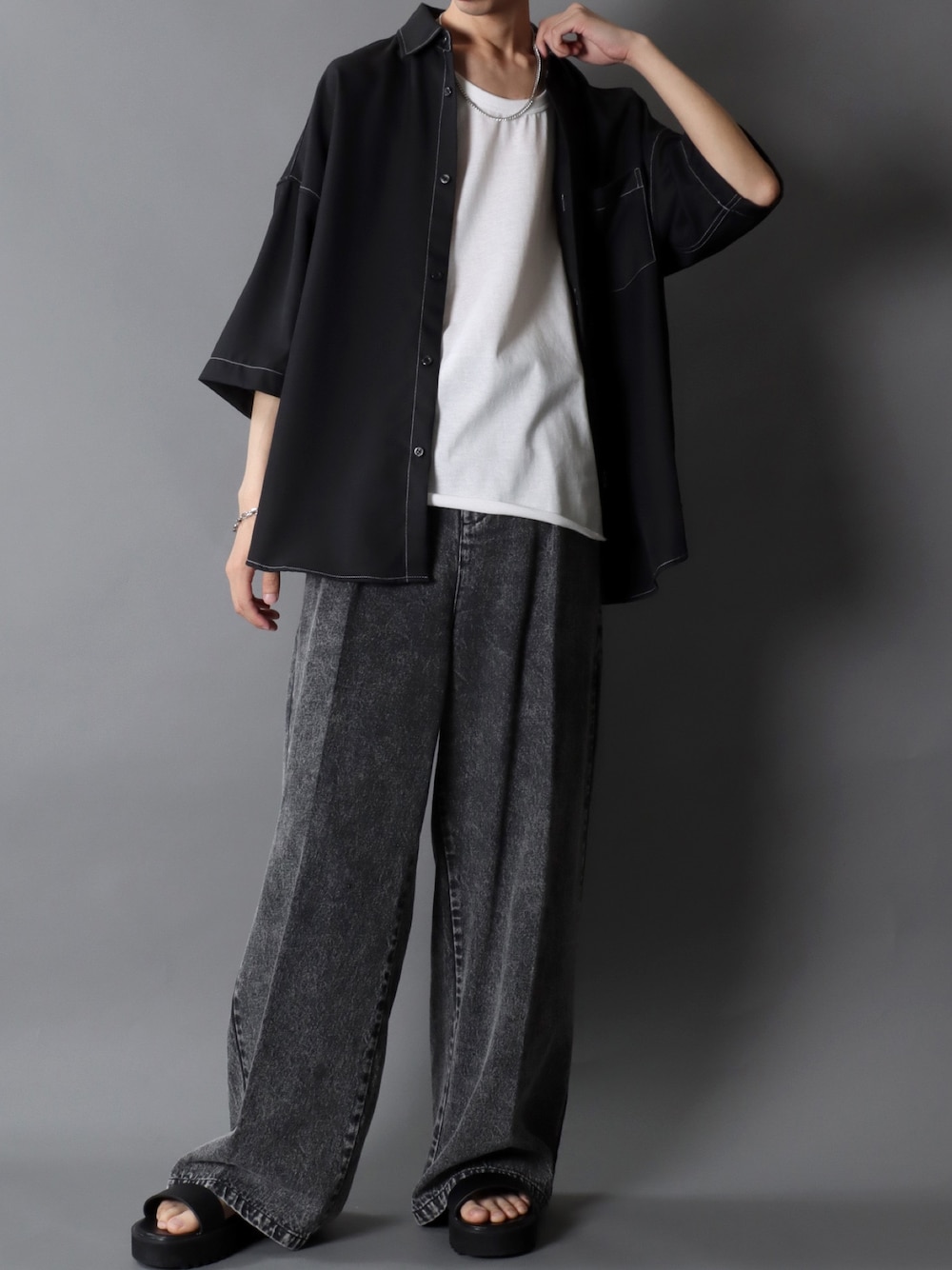 SITRY(SITRY)のシャツ/ブラウス「SITRY Oversize Drop shoulder Regular collar shirt/別注 ビッグシルエット ドレープツイル レギュラーカラーシャツ」を使ったコーディネート