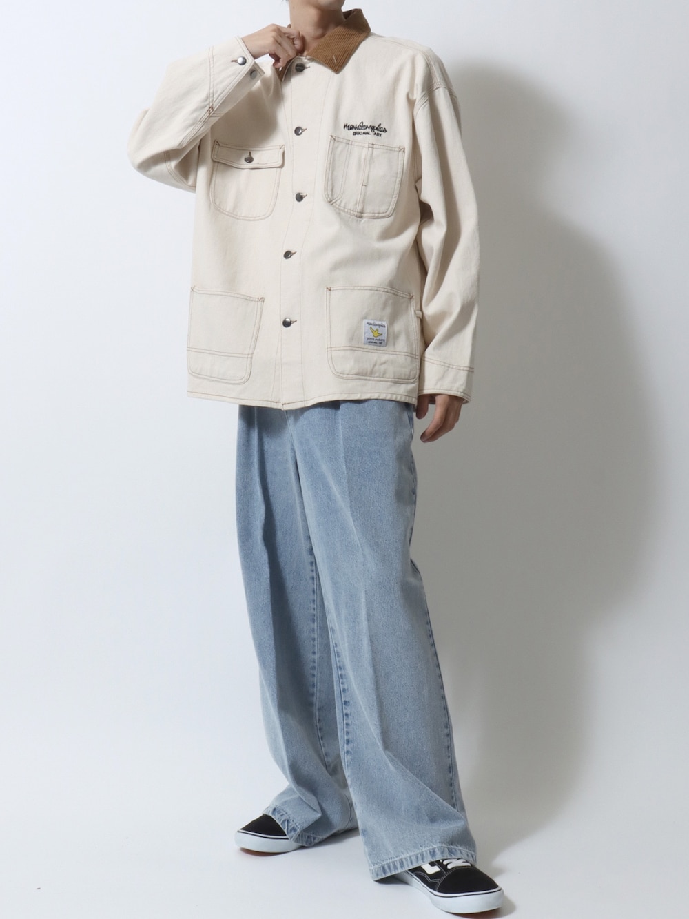 SITRY(SITRY)のカバーオール「MARK GONZALES ARTWORK COLLECTION/マークゴンザレス 別注 オーバーサイズ ワンポイント刺繍 衿コーデュロイ デニムカバーオール デニムジャケット ブルゾン」を使ったコーディネート