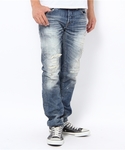 naki。のデニムパンツ「RED CARD / スリムストレートリペアー new」を使ったコーディネート