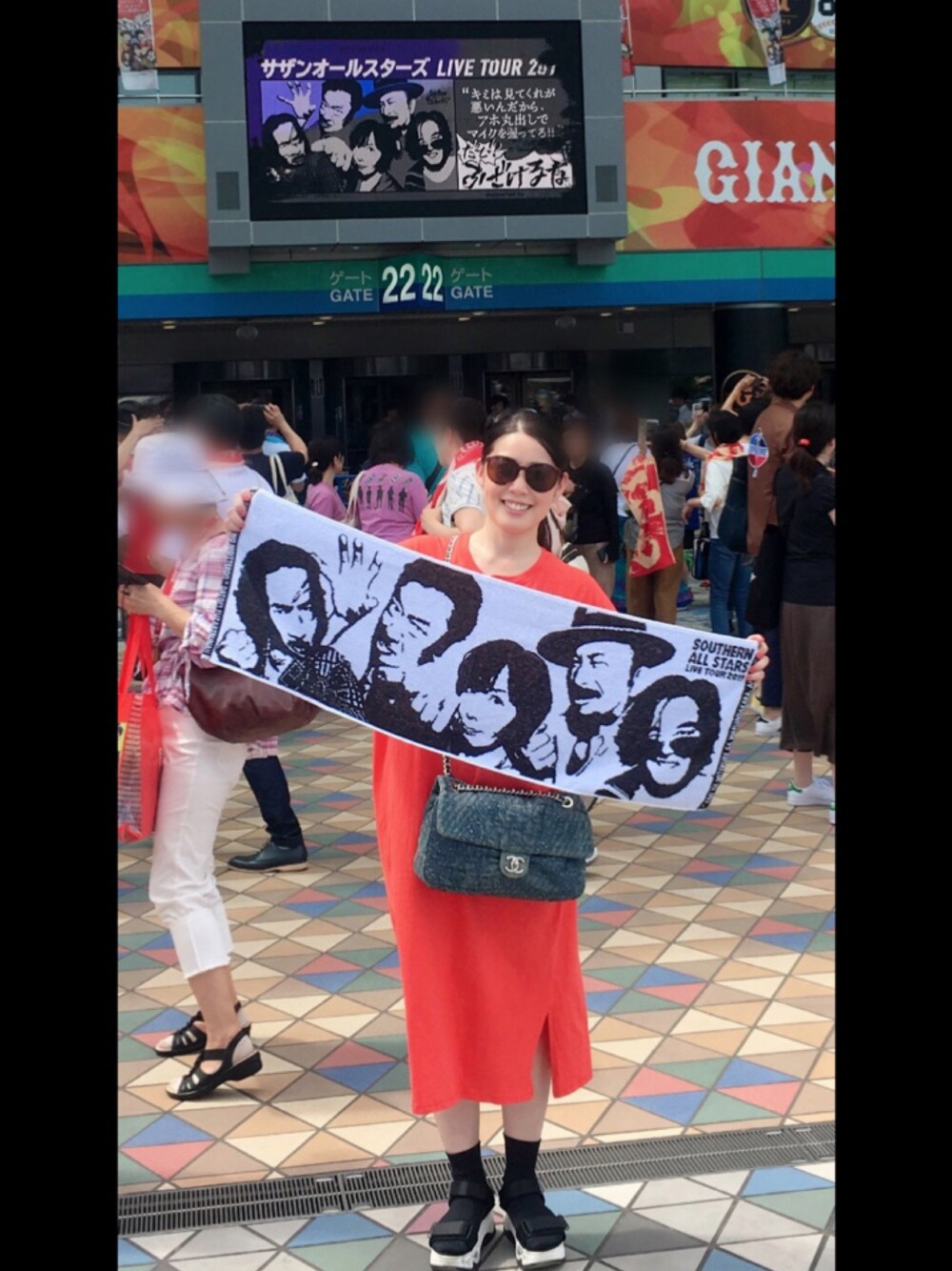 数年前のサザンのコンサートの時のコーデ。 夏のイメージで飛び切り鮮やかなオレンジのワンピースで参戦。