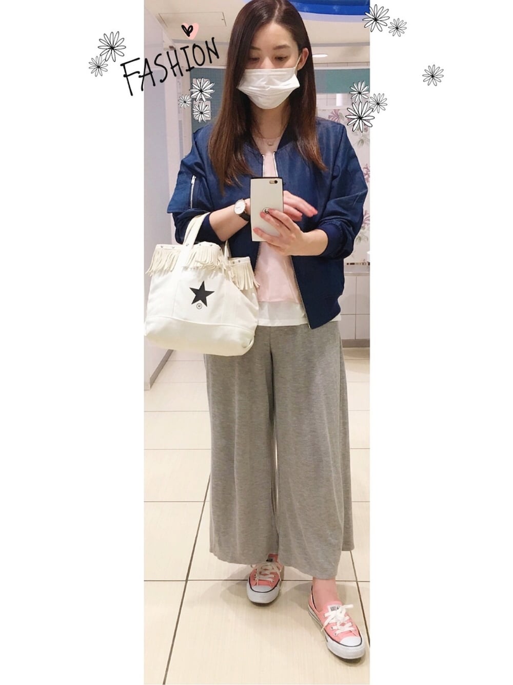 1歳ちょっとの赤ちゃんのいる友達の家へ遊びに。 イージーパンツにスニーカーで楽チン。 インディゴブルゾンは、吉祥寺のheartlandというセレクトショップでGET😁✨