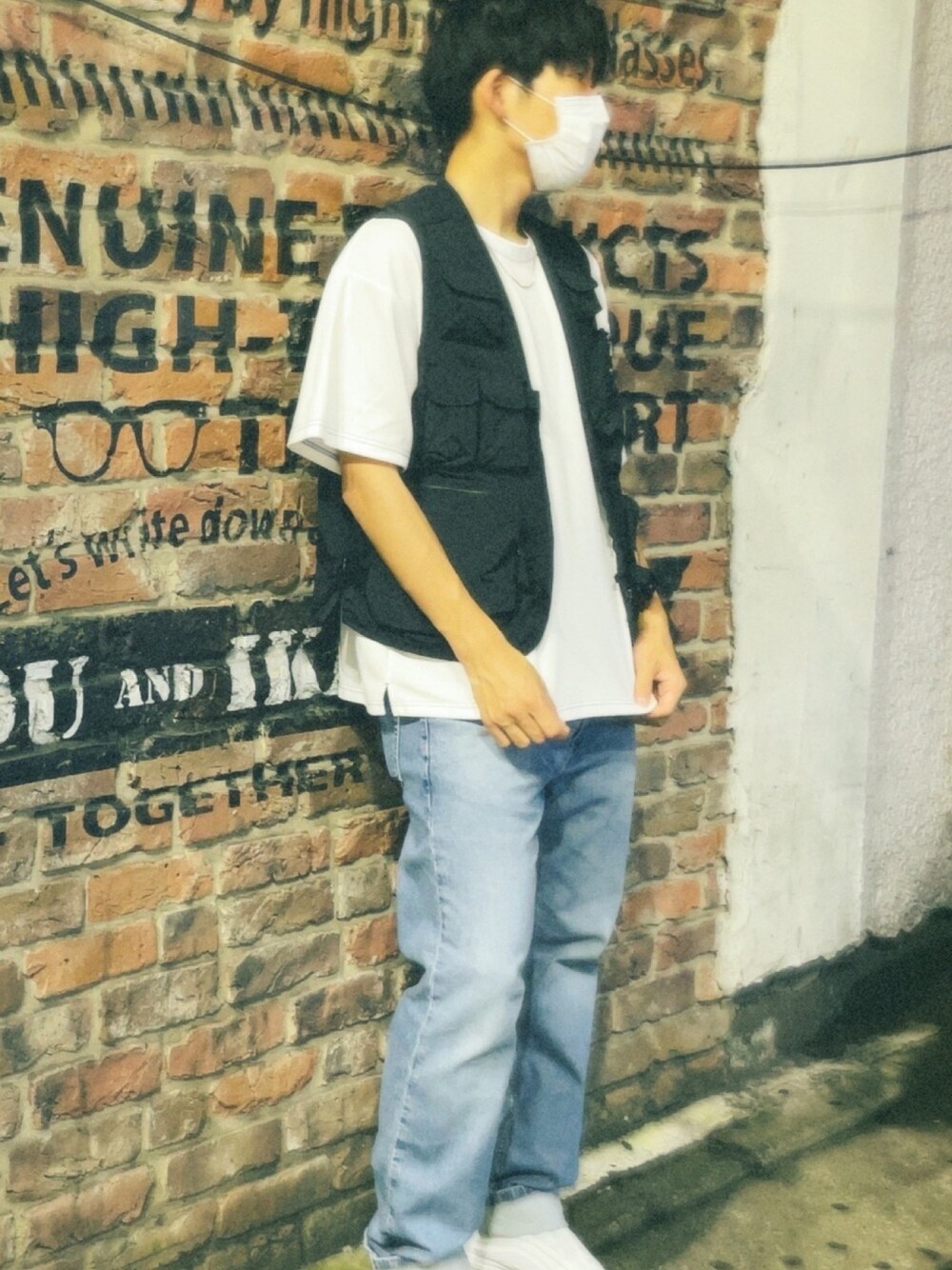 フィッシングベストを取り入れたストリートコーデ🔥 ベストの下に着るTシャツは何色でもいいです!ただ大きめの方がよりストリート感が出ますよ!! フィッシングベストは一つ持ってるだけでコーディネートのバリエーションが増えるので 買って損はないと思います🤤