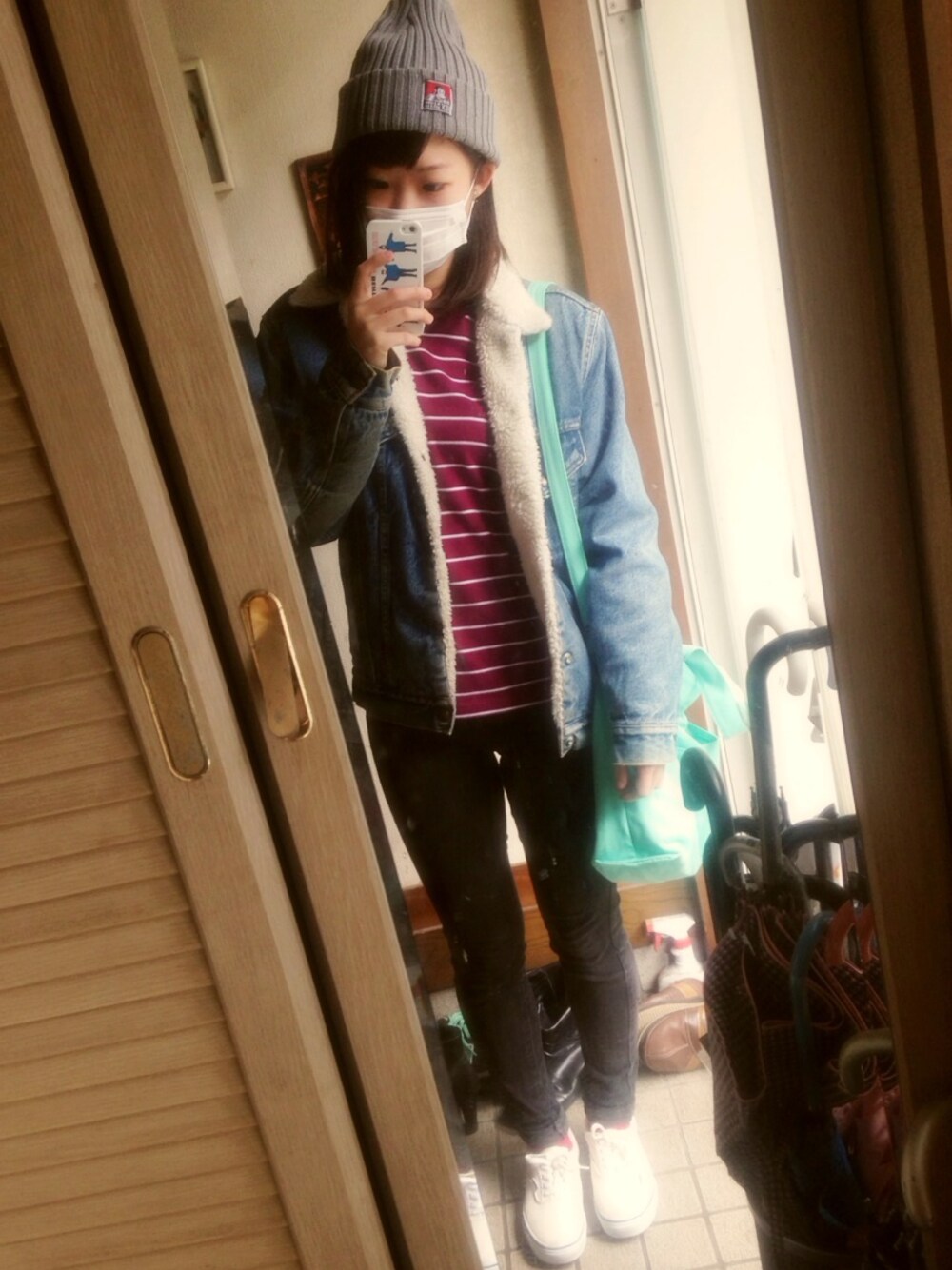 Tops / useのGAP Denim jacket / usedのLeevis Bag / GAP ちょっと家出るコーデ。 今日いいトレンチに出会えて幸せ☻ 綺麗な色のバッグも買えて いつになるかわからないデートの準備は ばっちりです♡♡♡ スニーカーも迷ってたけど最近購入! スニーカー色違いでシリーズで揃えがち〜