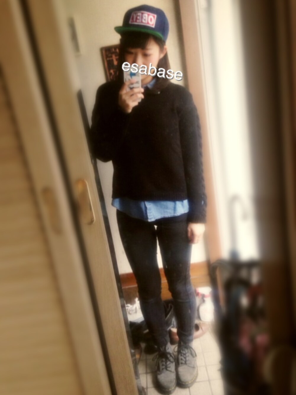 Knit / Forever21 Shirt / used Cap / Obey 来年のバレンタインは可愛い格好して 好きな人とデートしたいです♡ 足元はスニーカーを合わせたかったけど 雪の日はこのマーチンて決まってるので(多分滑りにくいから) このマーチン色がすごい珍しくて よく褒められるお気に入り☻ 明日は女の子コーデにしよう…