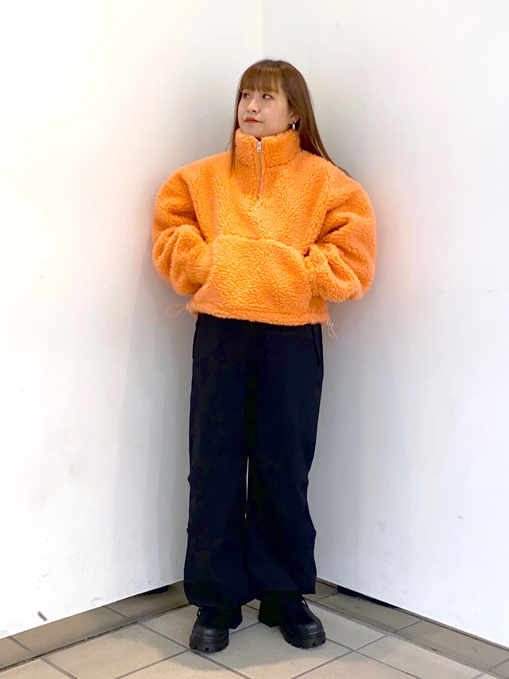 sayaka(wcloset LAFORET原宿店)のジャケット/アウター「★先行予約★ショート丈ハーフジップボアジャケット【1月下旬入荷】」を使ったコーディネート
