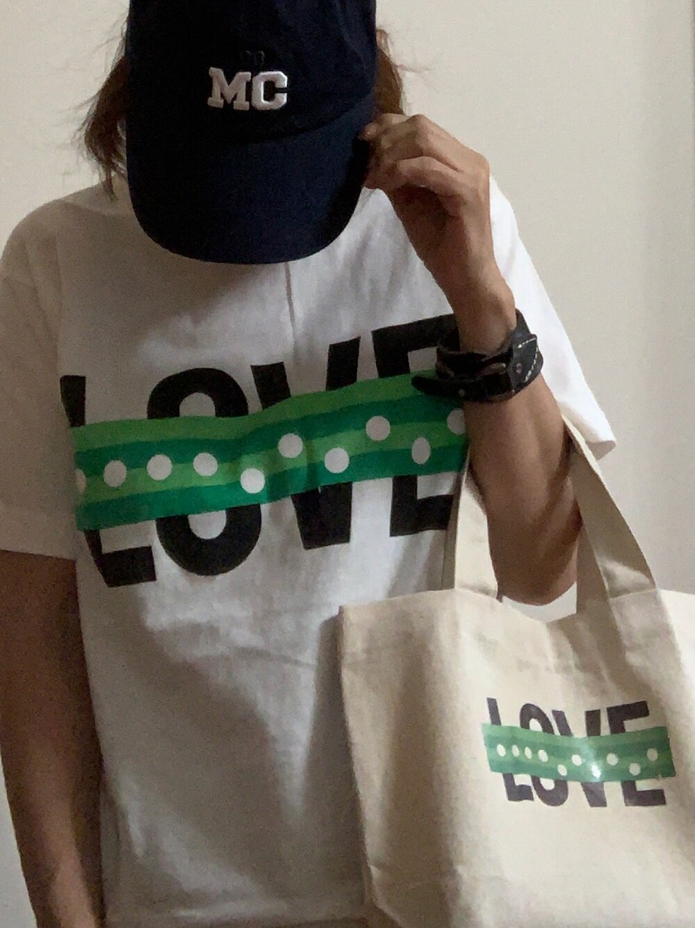 Niko and…とMIFARAのコラボ「言葉Tシャツ」。ネットで売り切れ続出でショップまで買いに行きました。 可愛すぎてオソロのトート作っちゃいました。